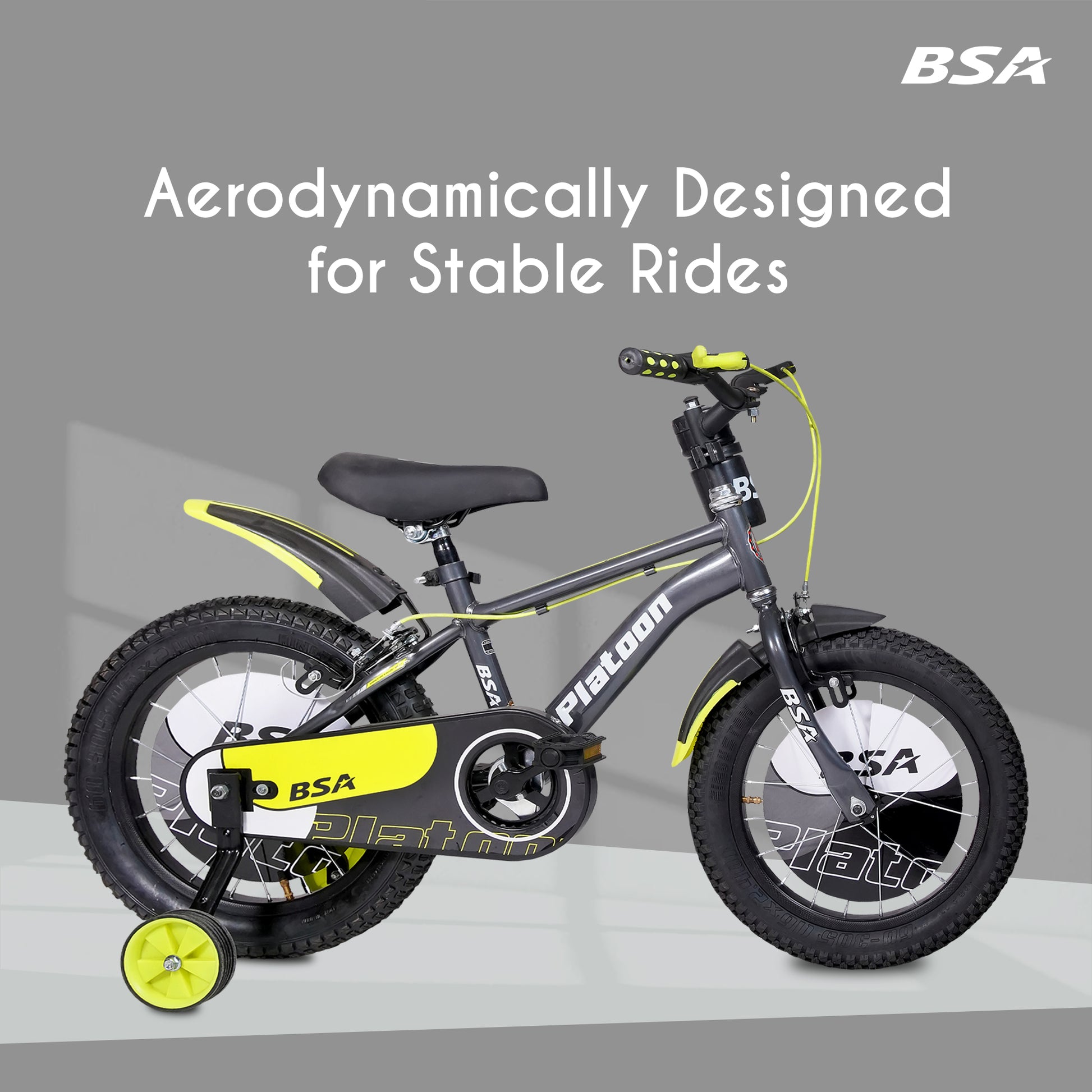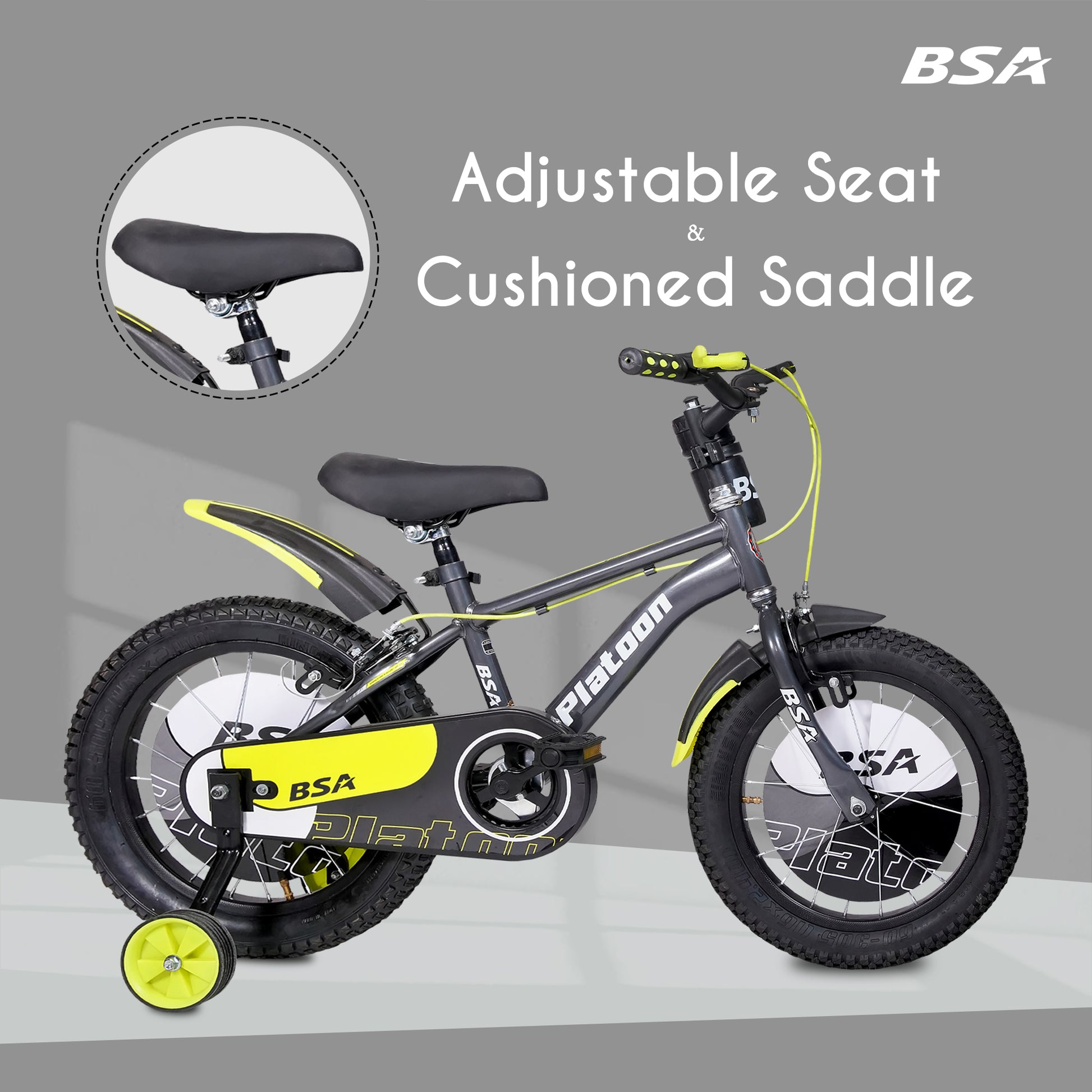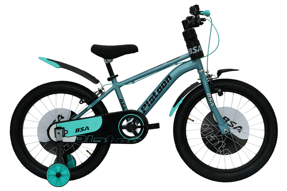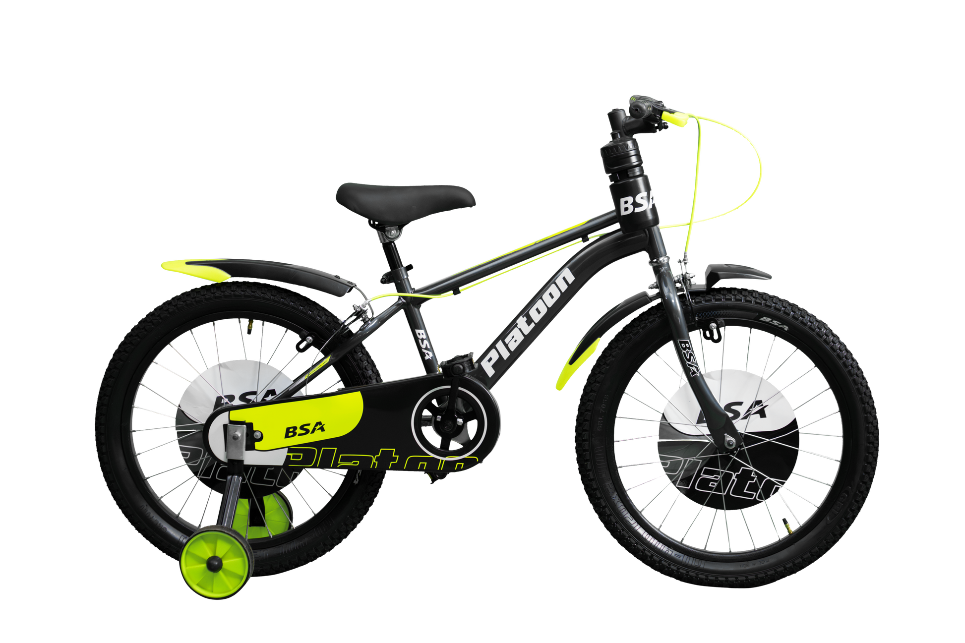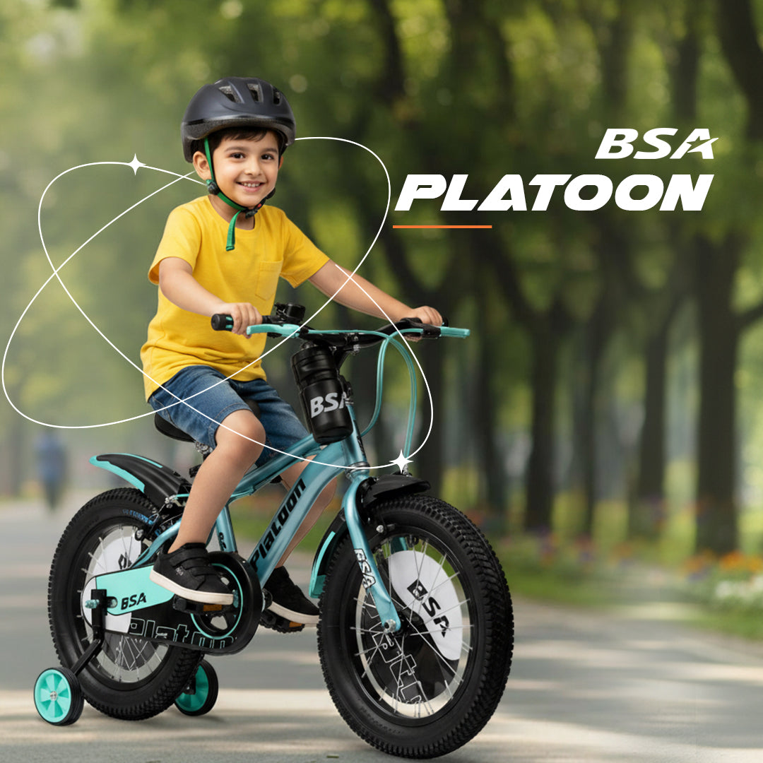 The BSA Platoon Kids Cycle is the perfect blend of style, comfort, and safety for young riders. Designed with a sporty, dynamic look, this bike is sure to catch the attention of any young adventurer. Featuring vibrant colors and a sleek frame, it offers a fun and exciting ride for kids. Equipped with sturdy training wheels, the BSA Platoon ensures stability and support while your child builds confidence and skills on two wheels. Ideal for beginners, it combines smooth handling with a durable build, making it perfect for outdoor play and active exploration. Whether cruising around the park or learning new tricks, the BSA Platoon is ready to take your child on their next adventure!