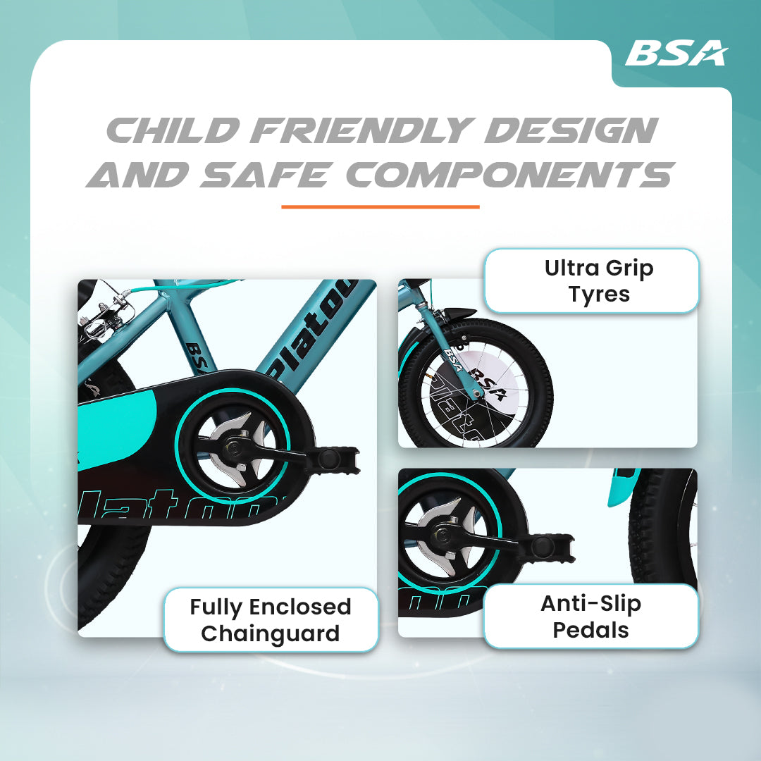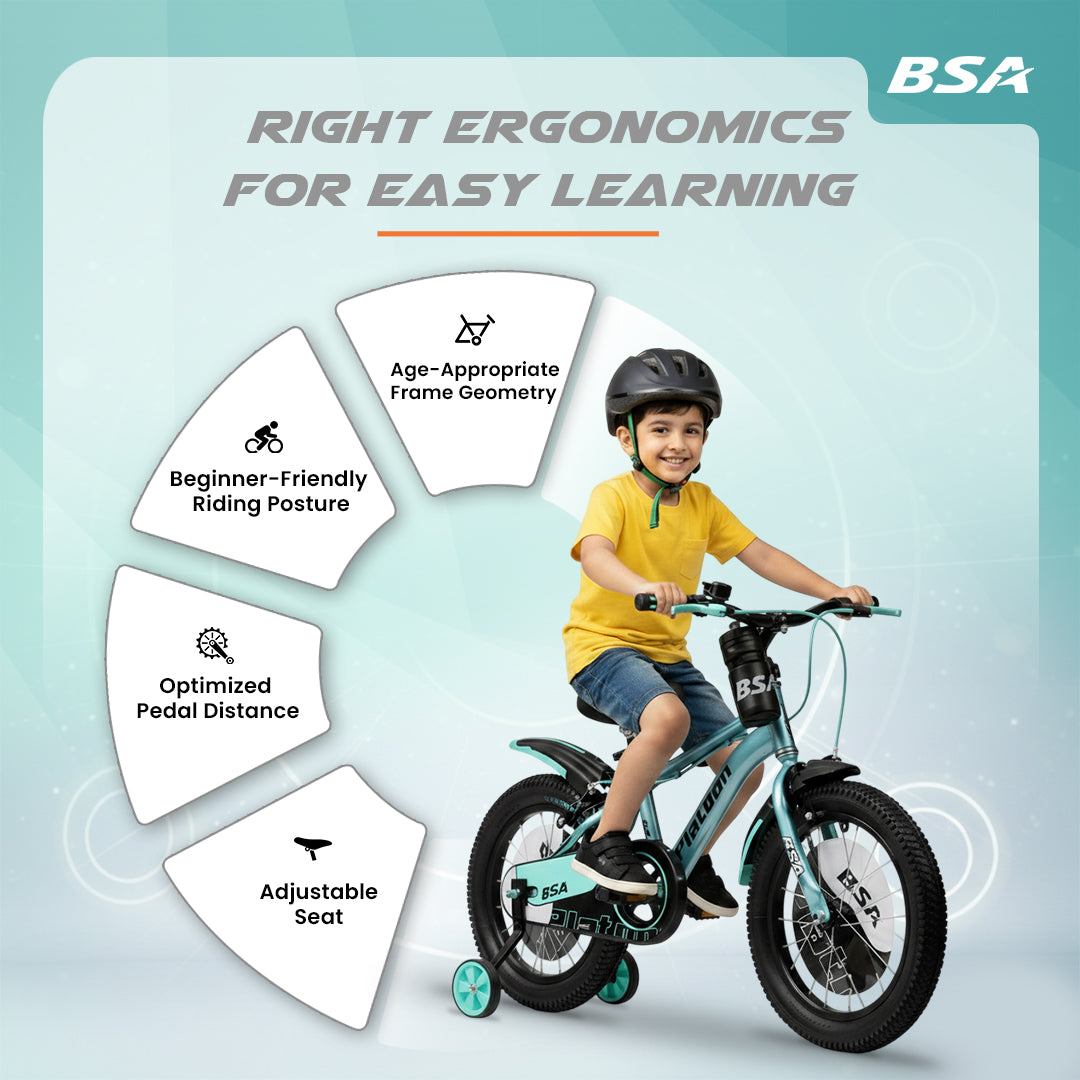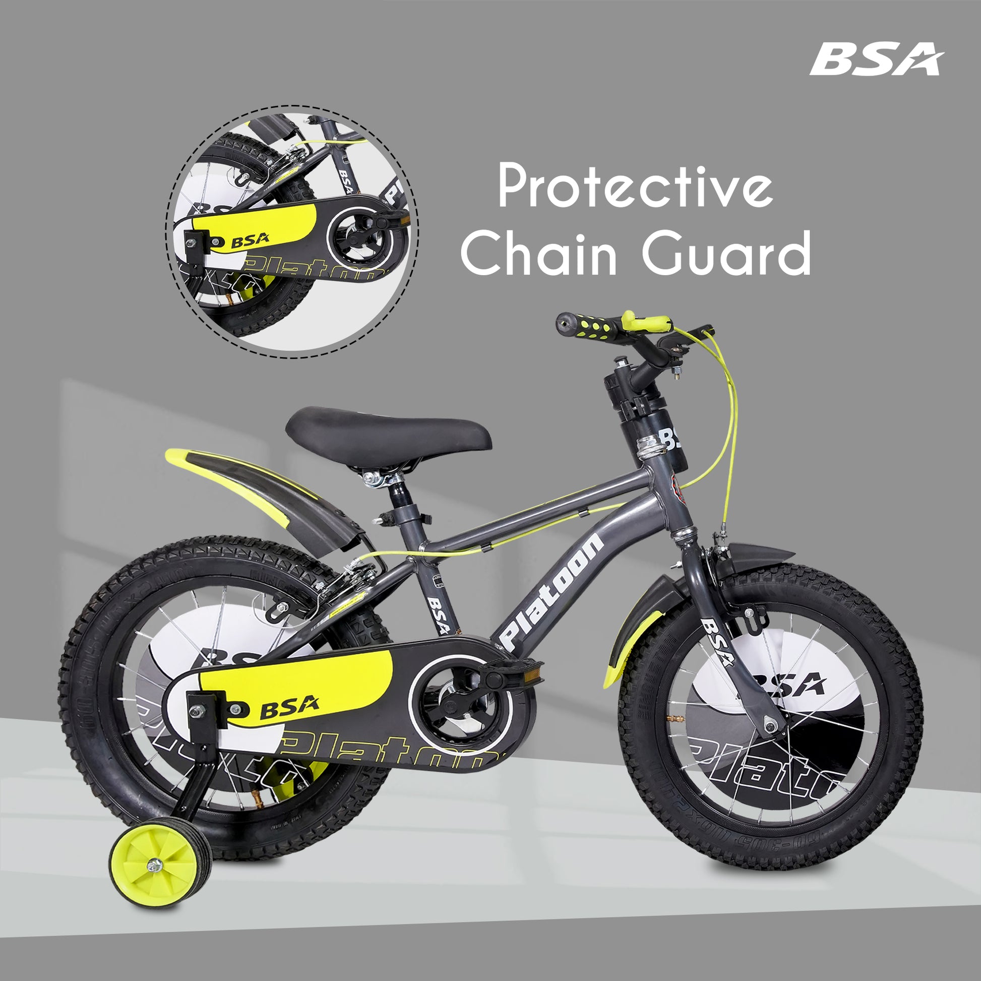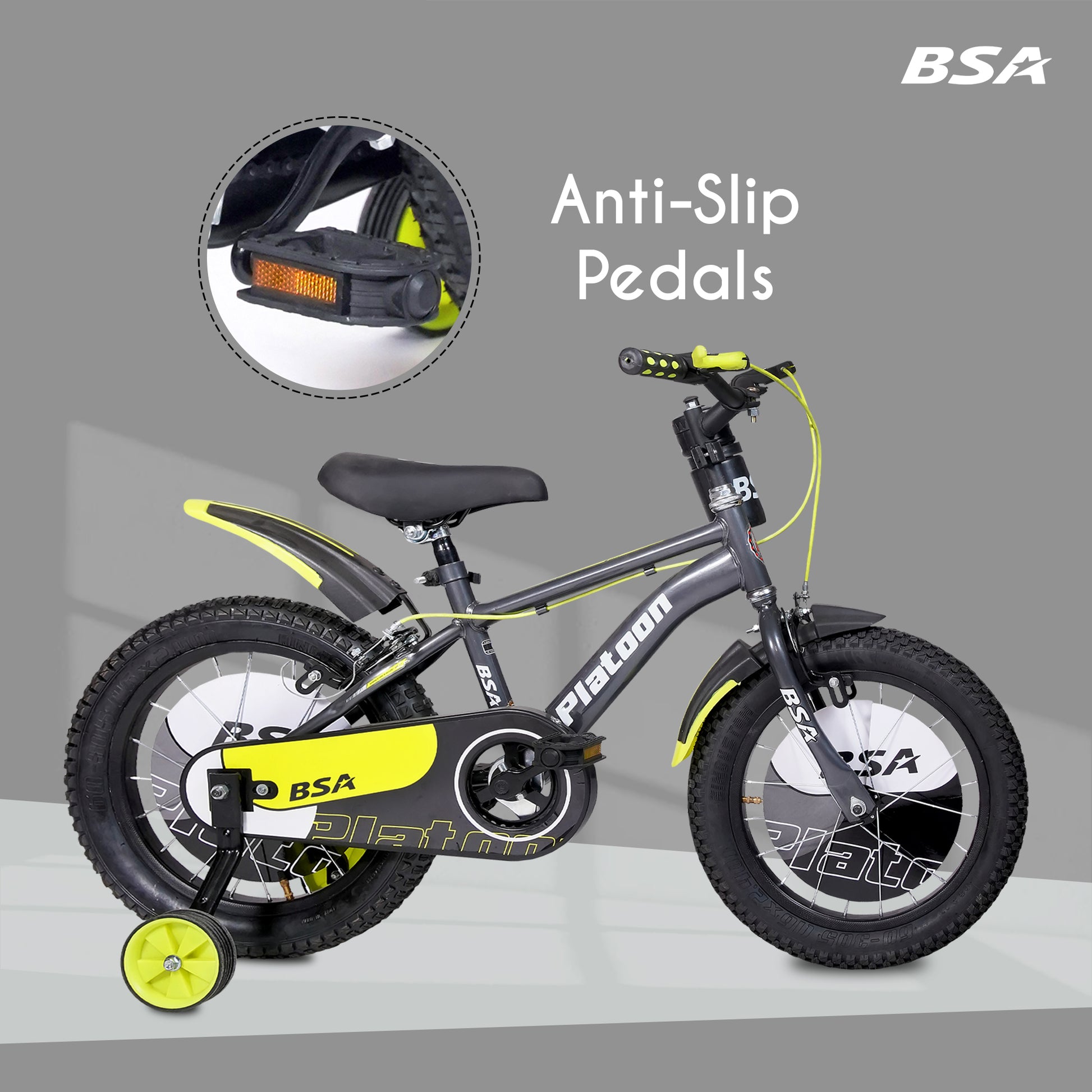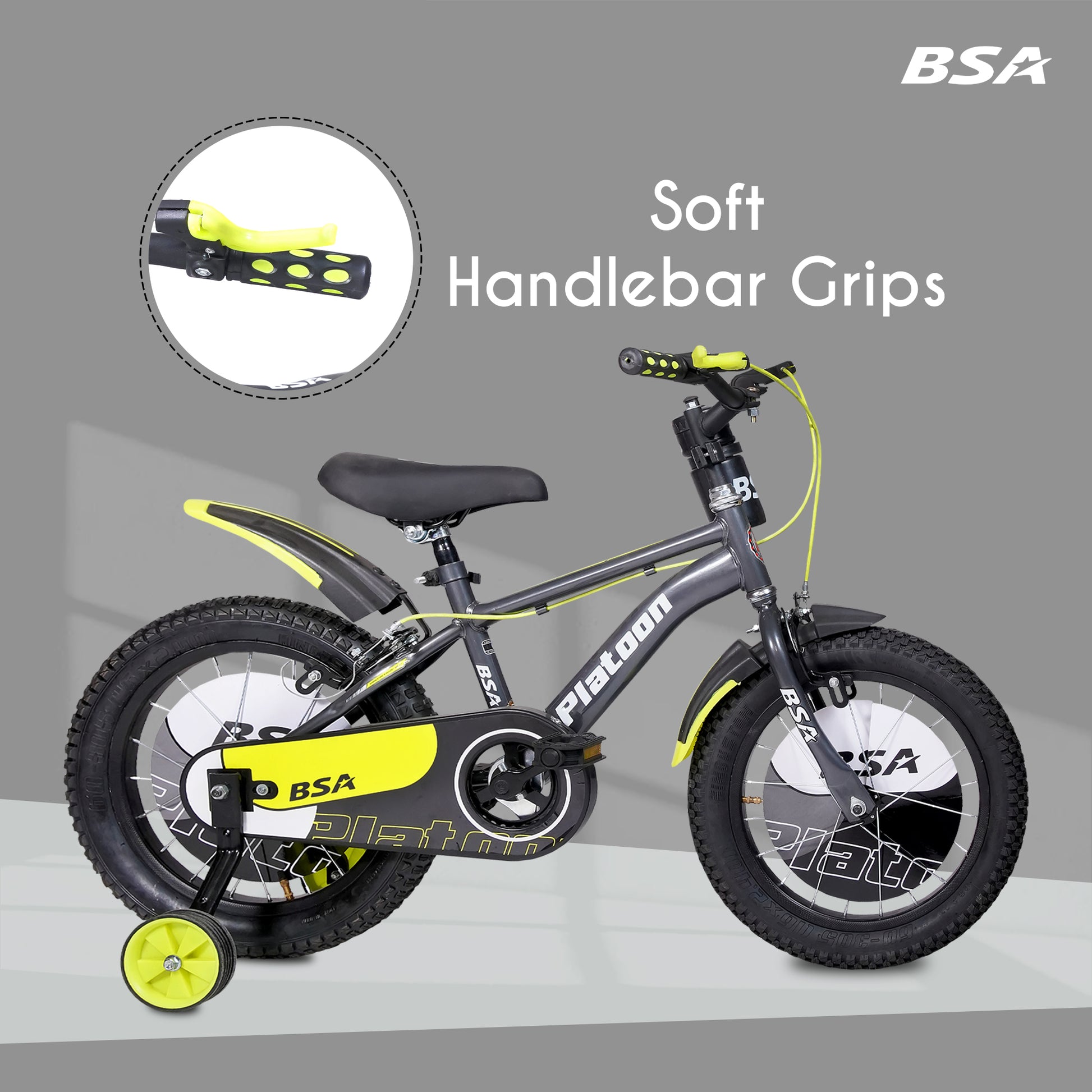 The BSA Platoon Kids Cycle is the perfect blend of style, comfort, and safety for young riders. Designed with a sporty, dynamic look, this bike is sure to catch the attention of any young adventurer. Featuring vibrant colors and a sleek frame, it offers a fun and exciting ride for kids. Equipped with sturdy training wheels, the BSA Platoon ensures stability and support while your child builds confidence and skills on two wheels. Ideal for beginners, it combines smooth handling with a durable build, making it perfect for outdoor play and active exploration. Whether cruising around the park or learning new tricks, the BSA Platoon is ready to take your child on their next adventure!