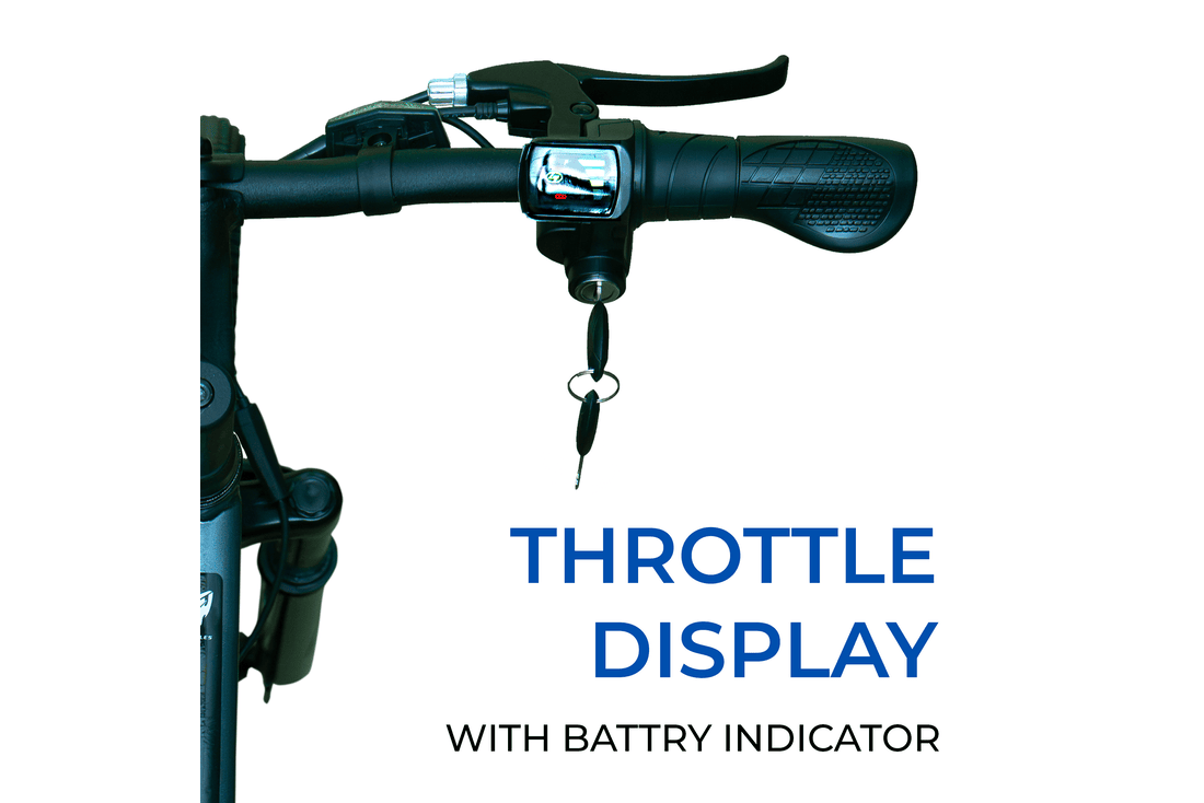 Battery Indicator Display – Stay informed with a convenient battery level indicator on the throttle.