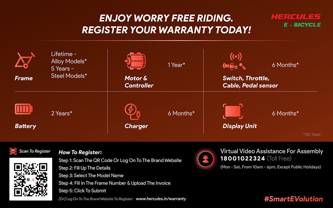 IN CASE OF CONSUMER COMPLAINTS CONTACT : TI CYCLES OF INDIA, A UNIT OF TUBE INVESTMENTS OF INDIA LTD, POST BAG NO.5, MTH ROAD, AMBATTUR, CHENNAI – 600 053, PHONE : 044-42093434