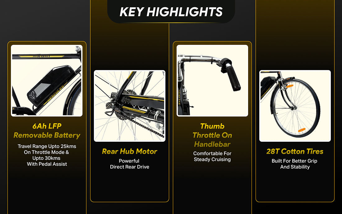 Mileage & Speed – Travel 25+ km on Throttle Mode and 35+ km on Pedal Assist Mode, reaching speeds of up to 25 km/hr—perfect for urban commutes.